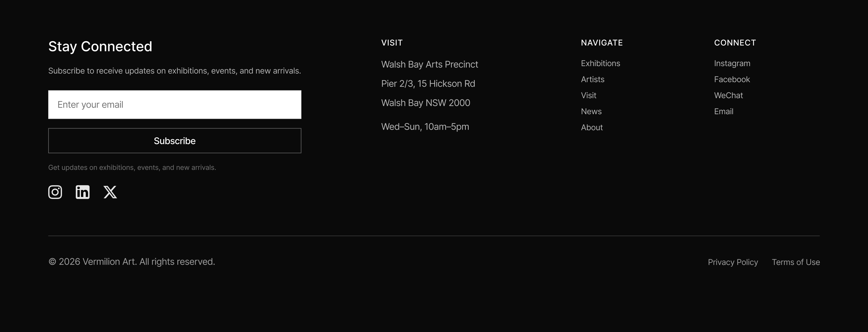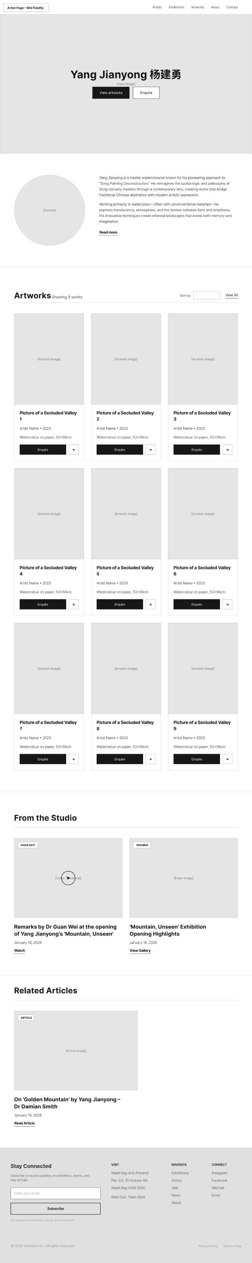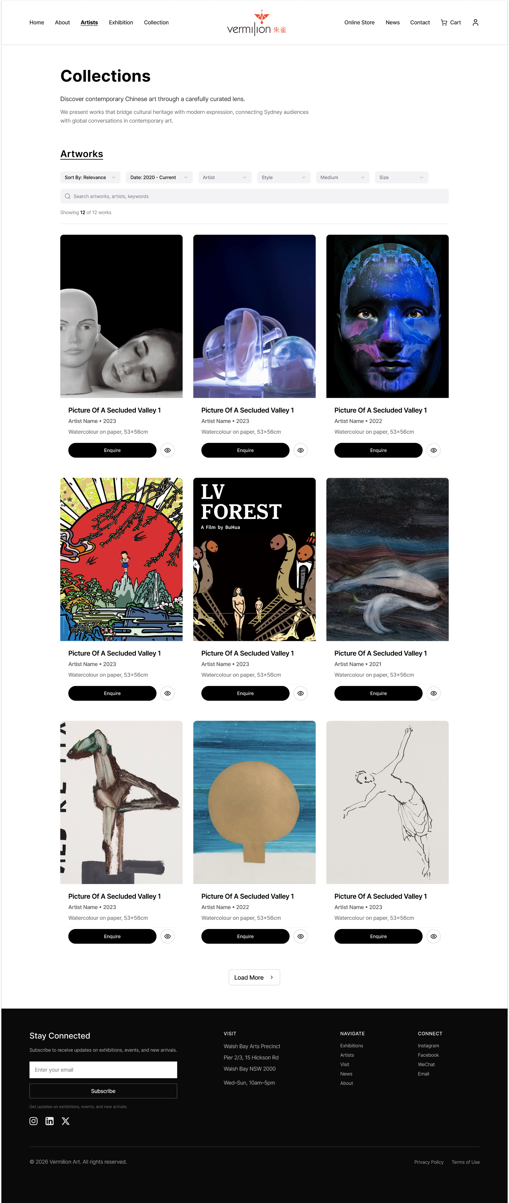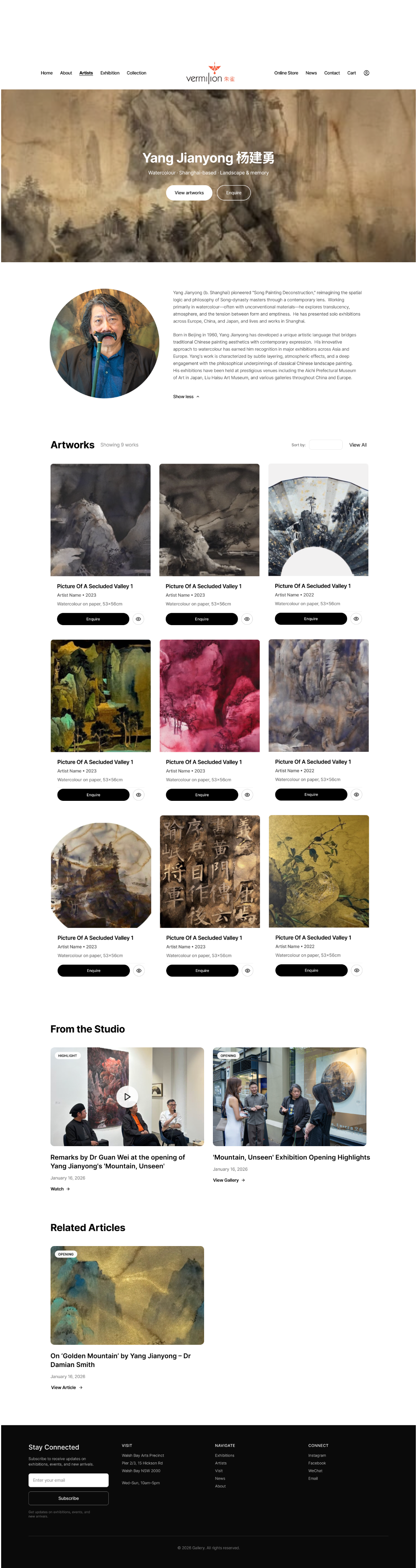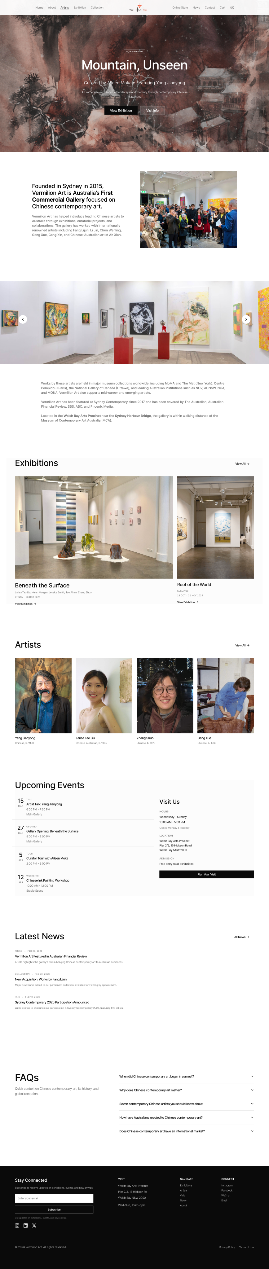 I redesigned key website journeys for Vermilion Art with a visitor-first approach—improving exhibition discovery, artist browsing, visit planning, and enquiries.