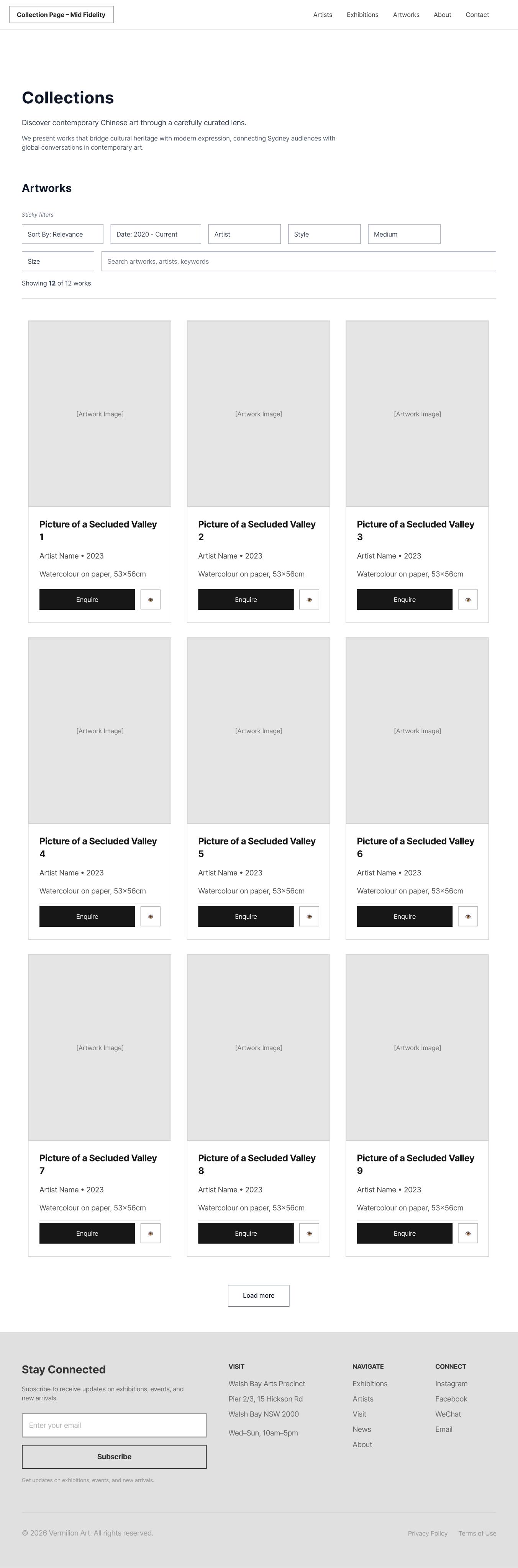This new Collections page is designed as a catalogue hub—built for users who arrive with a goal: find relevant works quickly and decide what to enquire about.